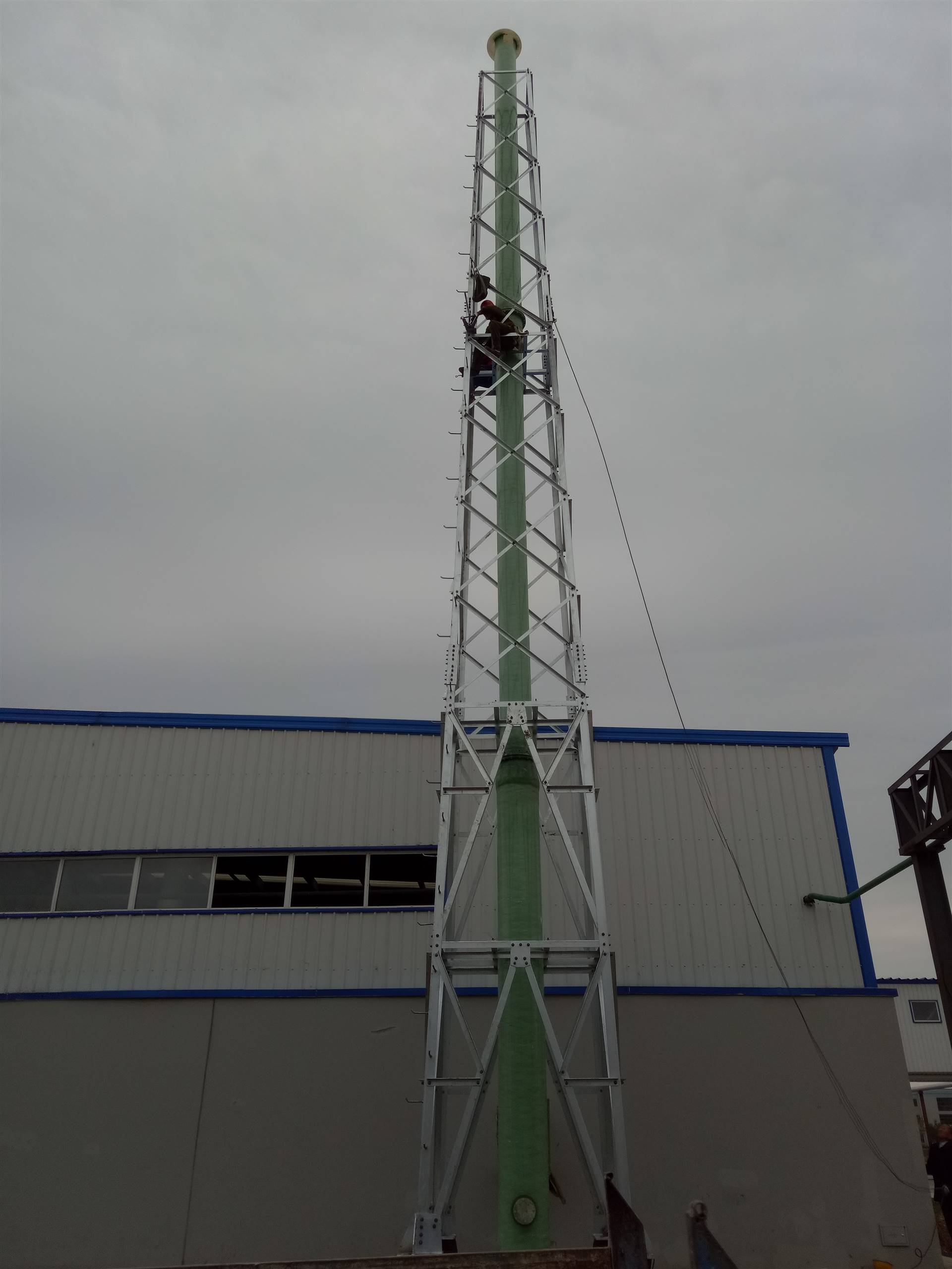 烟筒塔:主要用于烟囱的固定和维护,其结构分成四柱角钢结构和三柱钢管结构,烟囱在中间固定有箍,支撑的管道主要由a支撑钢结构支撑架。该结构是独立式和拉线式的。它主要用于化工公司,原油机构和易燃气体排放。高度范围为5至200米。塔体材质主要采用角钢和钢管。